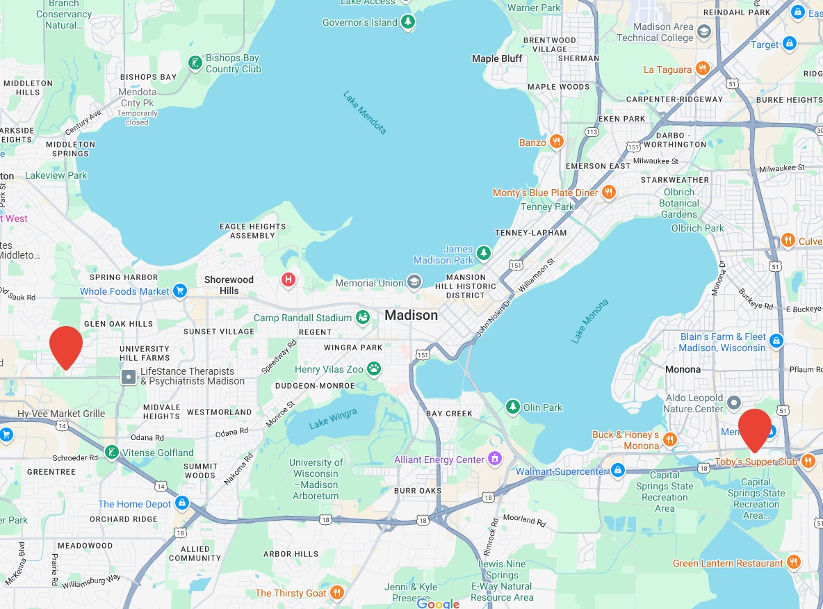 Though our physical address is in Madison, we travel all throughout south-central Wisconsin. You’re likely to see our trucks driving around throughout the following Dane County communities: